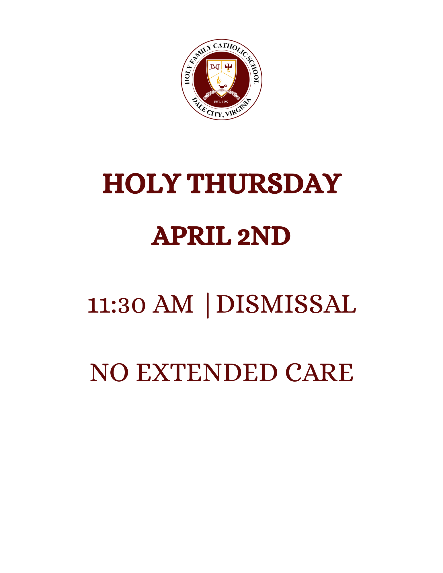 Holy Thursday Early Dismissal